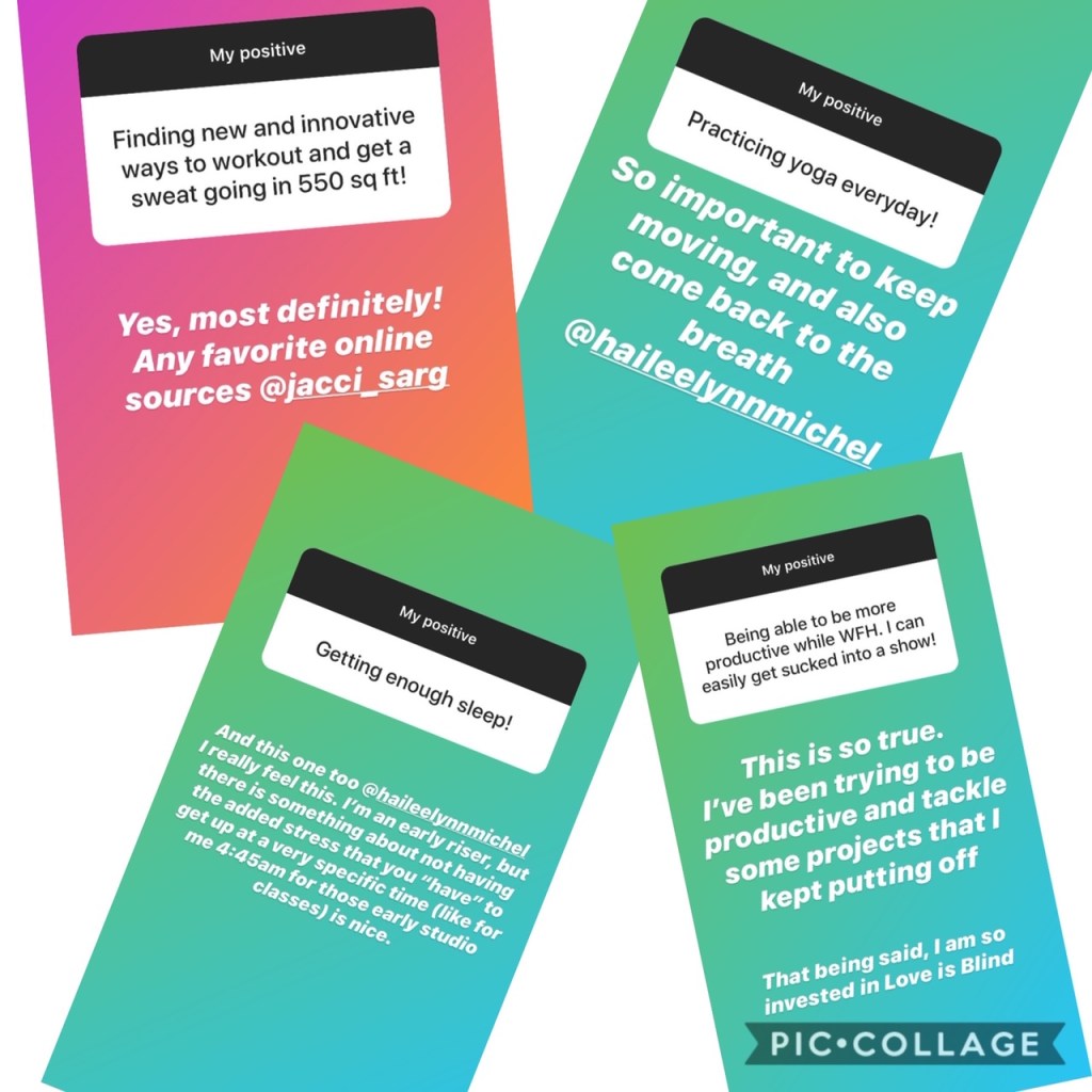 So time to share, what is your positive while being socially distant – and do you think you can continue it when life begins to resemble “the old days?”